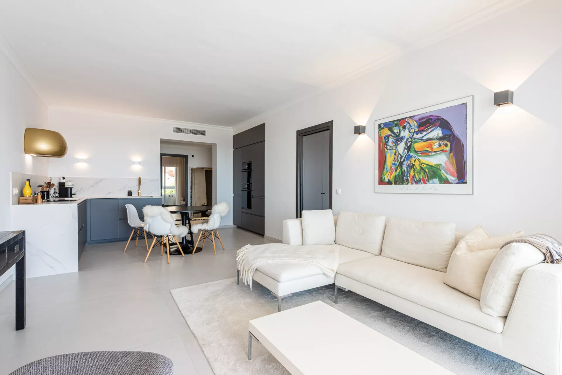 Dit appartement van circa 144 m² is recent volledig gerenoveerd met oog voor strakke lijnen, verfijnde afwerking en een rustige, Scandinavische vormgeving. De woning beschikt over drie ruime slaapkamers, twee modern afgewerkte badkamers en een royaal terras met panoramisch uitzicht op de Middellandse Zee en de omliggende bergen. Het terras is geschikt voor dagelijks gebruik en biedt het hele jaar door een aangename buitenruimte.