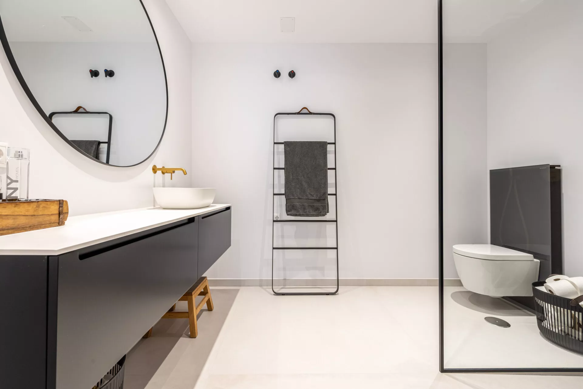 Het interieur kenmerkt zich door een minimalistische Scandinavische stijl, waarin hoogwaardige materialen zijn gecombineerd met een zachte, neutrale kleurenstelling die het licht en de ruimtelijkheid versterkt. De open leefruimte sluit naadloos aan op een volledig uitgeruste keuken met hoogwaardige Samsung-apparatuur, wat zorgt voor een evenwichtige combinatie van comfort en functionaliteit.