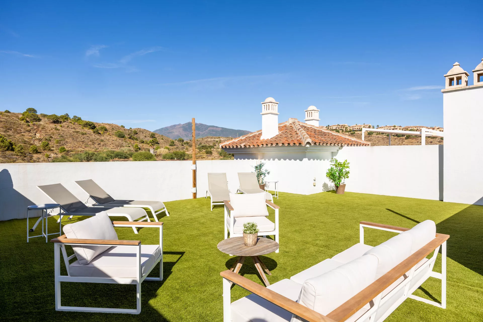 De woning maakt deel uit van de gewilde urbanisatie Paraiso Pueblo, waar bewoners gebruik kunnen maken van een groot buitenzwembad met restaurant, een verwarmd binnenzwembad en een volledig uitgeruste fitnessruimte. De opzet van het complex heeft een dorps karakter en biedt een rustige woonomgeving, terwijl Benahavís en de voorzieningen van de Costa del Sol zich op korte afstand bevinden.